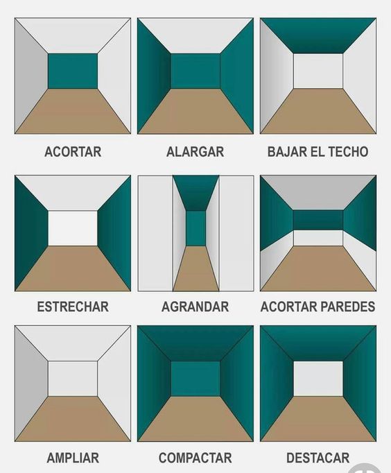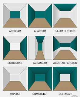 Dependiendo de como utilice los colores podremos crear espacios más amplios, acortarlos, podremos dar sensación de techos más bajos, o más altos.